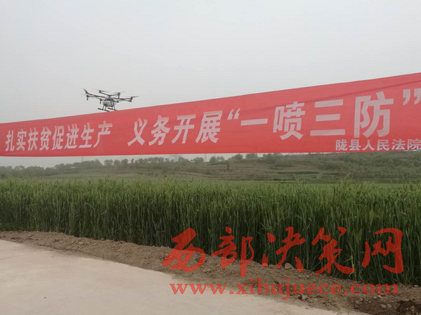 普樂塬村是隴縣法院幫扶的貧困村,針對村內(nèi)青壯年大多外出打工,勞動力不足的情況,為確保小麥高產(chǎn),減輕村民負(fù)擔(dān),同時(shí)引導(dǎo)大家關(guān)注科技種田,轉(zhuǎn)變思維方式,經(jīng)法院駐村第一書記路云多方聯(lián)系,隴縣法院花費(fèi)3萬元,租用無人機(jī)免費(fèi)為普樂塬村噴灑農(nóng)藥。預(yù)計(jì)用2天時(shí)間為全村2000畝小麥進(jìn)行防蟲霉菌預(yù)防,同時(shí)也邀請縣農(nóng)機(jī)推廣中心對藥品質(zhì)量進(jìn)行全程監(jiān)督。