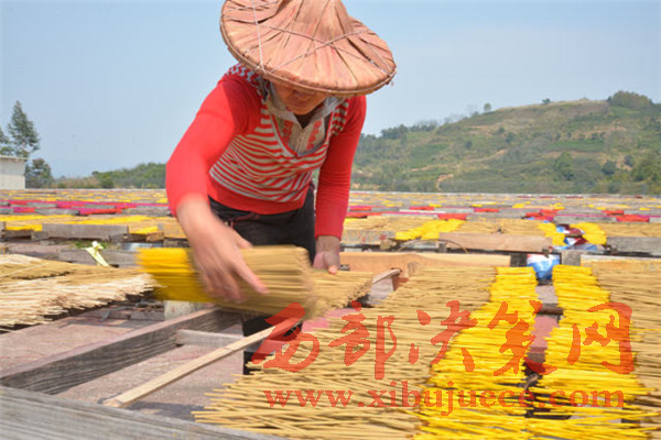 泉州永春縣一家制香廠員工在曬香。