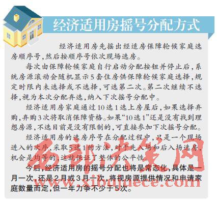 經(jīng)濟適用房機選,有兩次“5選1”機會;公租房人房對應(yīng),最終達到每月一次