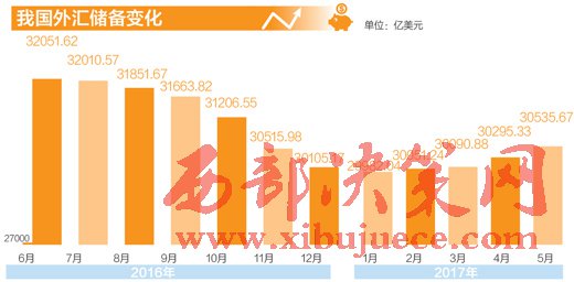 中國人民銀行最新公布的數(shù)據(jù)顯示,5月末,我國外匯儲(chǔ)備規(guī)模為30536億美元,較4月末小幅上升240億美元,增幅0.8%,連續(xù)第四個(gè)月出現(xiàn)回升。今年1月,外匯儲(chǔ)備跌破3萬億美元,此后開始連續(xù)回升。