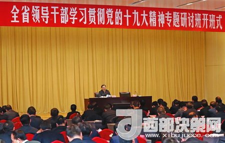 11月29日,全省領(lǐng)導(dǎo)干部學(xué)習(xí)貫徹黨的十九大精神專題研討班在西安開班。省委書記、省長胡和平出席開班式并講話。他強(qiáng)調(diào),要堅(jiān)定不移貫徹習(xí)近平新時(shí)代中國特色社會主義思想,緊盯追趕超越目標(biāo),踐行“五個(gè)扎實(shí)”要求,落實(shí)好省第十三次黨代會提出的“五新”戰(zhàn)略任務(wù),確保十九大精神在陜西省落地生根、見到實(shí)效。