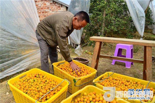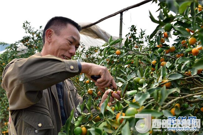 近年來,廣西融安縣因地制宜,把金桔列為扶貧增收的重要產(chǎn)業(yè),通過農(nóng)業(yè)獎補政策、專業(yè)種植技術(shù)培訓等鼓勵貧困戶種植金桔,助力脫貧。融安縣大將鎮(zhèn)雅仕村的貧困戶漆昭賢,曾常年在外地打工,生活條件艱苦。2014年在縣里政策引導下,他返鄉(xiāng)種植金桔,并獲得專項補貼和無息貸款,連續(xù)三年參加縣農(nóng)業(yè)局等單位舉辦的種植技術(shù)培訓班。如今,漆昭賢不僅在自己的地里種金桔,還承包了周圍農(nóng)戶的土地,種植面積十余畝,今年預計產(chǎn)量可達16000斤,純收入有望達到4萬元。記者李絢麗攝