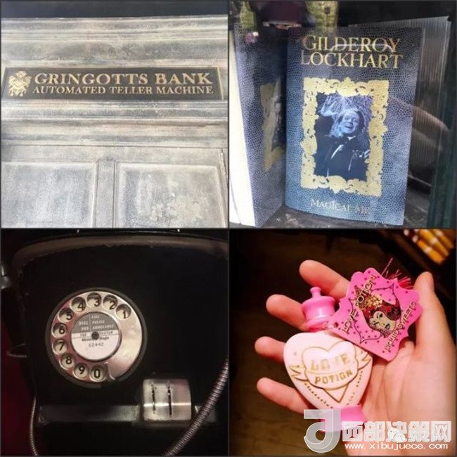 左下:電話亭里的魔法部 電話號碼;韋斯萊魔法笑料店的愛情魔藥