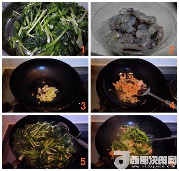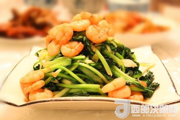 主料:蝦仁150個,塔菜1棵