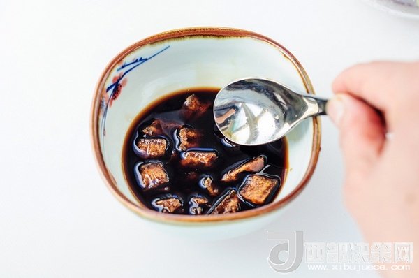 3、紅糖調(diào)進陳醋攪拌融化成酸甜汁。