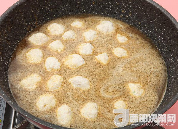 5、裝著魚丸的勺子在冷水鍋里輕輕抖一下,魚丸就自行脫落了。