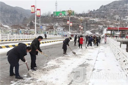 積極動員,保障城區(qū)道路安全。降雪降溫天氣也給城區(qū)道路交通造成了安全隱患,影響了市民的安全出行。對此,兩當(dāng)縣組織和動員全縣各部門干部職工攜帶掃帚、鐵鍬等工具,走上街頭或到指定區(qū)域,積極開展義務(wù)除雪除冰活動,全力為城區(qū)道路安全暢通以及市民的正常出行創(chuàng)造了條件。目前,各單位門前積雪已清理干凈,城區(qū)主要道路積雪清掃工作也基本完成。