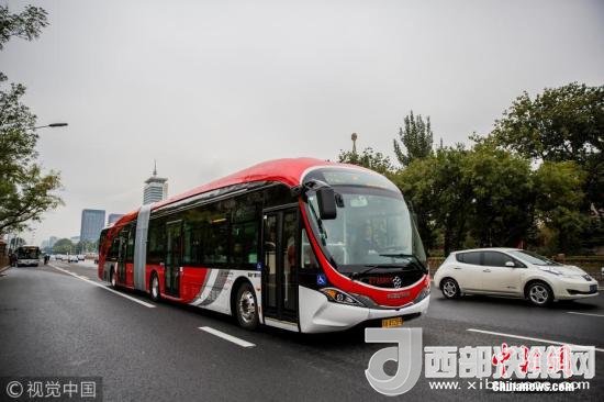 2017年10月22日,北京,首批以“中國(guó)紅”為外觀主題的18米純電動(dòng)公交車投入運(yùn)營(yíng)。圖片來(lái)源:視覺(jué)中國(guó)