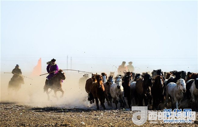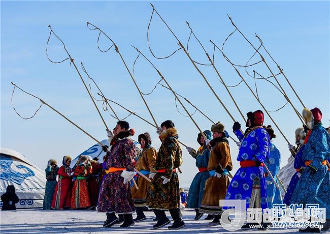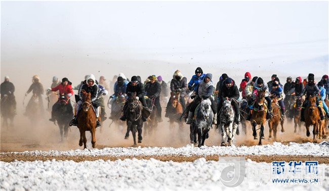 1月16日,在內(nèi)蒙古錫林浩特鳳凰馬場(chǎng),當(dāng)?shù)啬撩癖硌萏遵R。