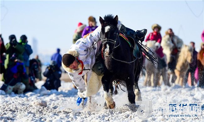 1月16日,在內(nèi)蒙古錫林浩特鳳凰馬場(chǎng),當(dāng)?shù)啬撩駛冑愸橊劇?br />