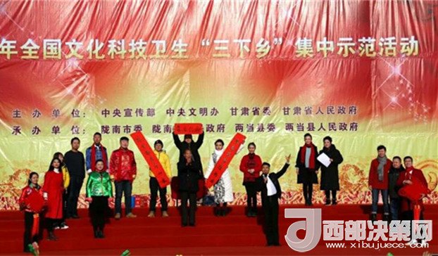 西部決策網(wǎng)-西部大開發(fā)訊(帥華鋒 通訊員 馬存福 漆曉明) 1月19日,2018年全國文化科技衛(wèi)生“三下鄉(xiāng)”集中示范活動在兩當(dāng)縣日月廣場舉行。中央文明辦專職副主任夏偉東,副省長李斌,中宣部宣教局局長常勃,中央文明辦一局局長張志勇,省委宣傳部副部長李均,市委書記孫雪濤,市委副書記、市長崔景瑜,省文明辦主任羅鳳存,市委常委、宣傳部長李興華等出席活動。