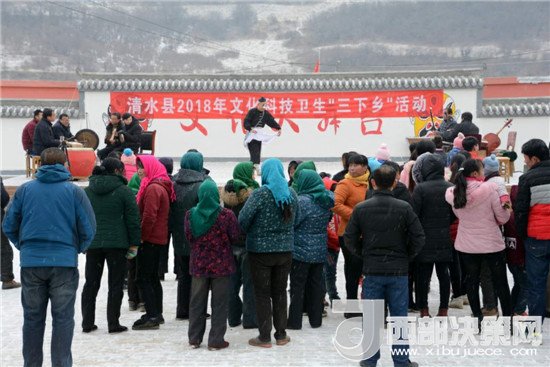 西部決策網(wǎng)-西部大開發(fā)訊(帥華鋒 通訊員 馬存福 楊兆康)大雪紛飛雪飄揚(yáng),過了臘八就是年。1月24日,由清水縣委宣傳部、文明辦、文廣局、縣委黨校、文化館、農(nóng)業(yè)局、縣醫(yī)院、中醫(yī)院、婦保站、文聯(lián)等單位組織開展的2018年文化科技衛(wèi)生“三下鄉(xiāng)”活動(dòng)走進(jìn)秦亭鎮(zhèn)全莊村。