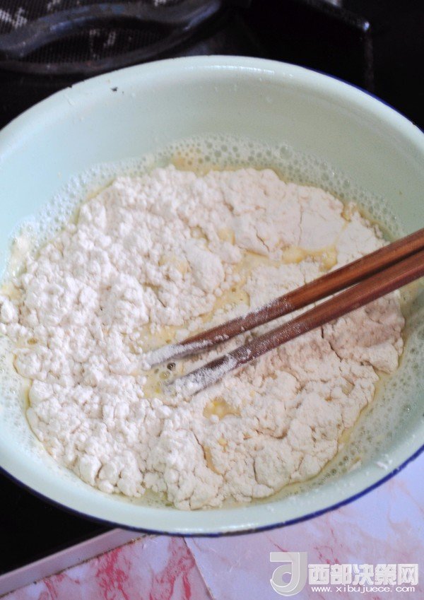 4.調(diào)成均勻的面糊,不要太稀,如酸奶般的稠度。如果口味重可以加點(diǎn)鹽。