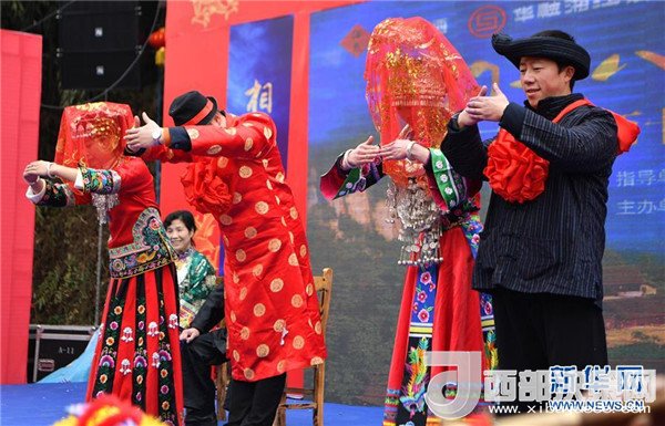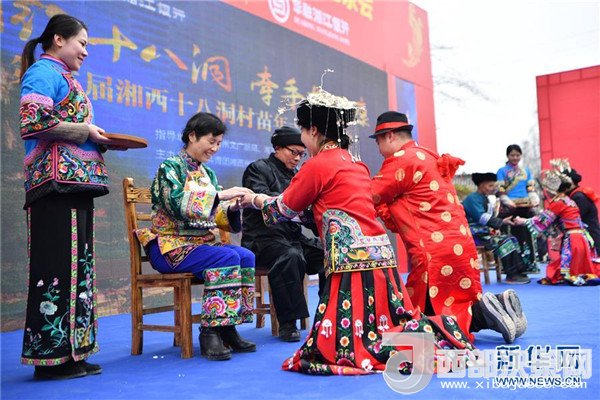 2月4日,兩對分別來自湘西和湘潭的新人特地來到湖南省湘西土家族苗族自治州花垣縣十八洞村體驗(yàn)苗族婚禮。 (薛宇舸 攝)