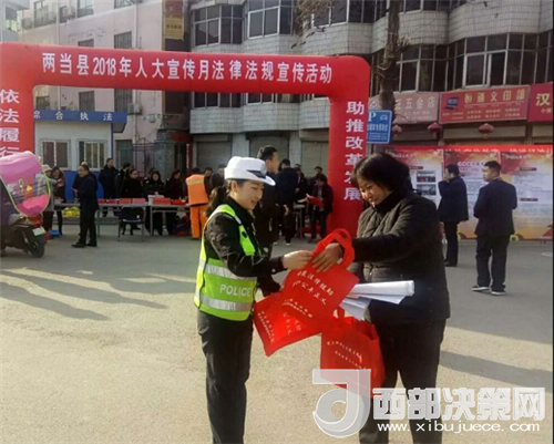 西部決策網(wǎng)-西部大開發(fā)訊(帥華鋒 通訊員 馬存福 施廣永)3月1日上午,甘肅兩當縣公安局交警大隊結合自身實際,積極參與了縣法治辦組織的人大宣傳月法律法規(guī)宣傳活動。