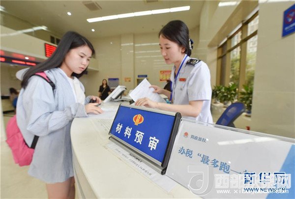 在福建福州地稅綜合辦稅中心辦稅服務(wù)廳,工作人員對納稅人材料進行預(yù)審,以節(jié)約其等候時間(2017年7月18日攝)。 新華社記者宋為偉攝