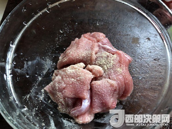 2.放入碗里加點(diǎn)料酒、鹽和白胡椒粉腌制15分鐘