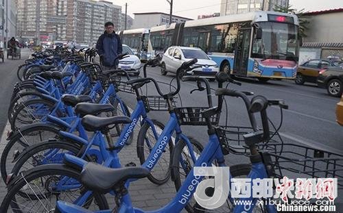 資料圖:北京街頭的小藍單車。中新社記者 賈天勇 攝