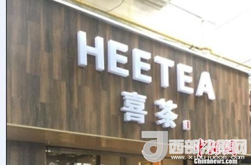 資料圖:在店鋪門頭上抄襲使用與“喜茶”中文商標相同、與“Heytea”英文商標近似的組合標識。供圖 申海 攝