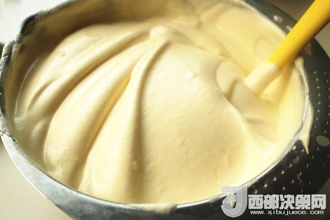 4.繼續(xù)用手抽拌勻,很細(xì)膩順滑。后蛋法不容易使面糊起筋,做出的蛋糕更細(xì)膩,也不易回縮。拌好的蛋黃糊待用。