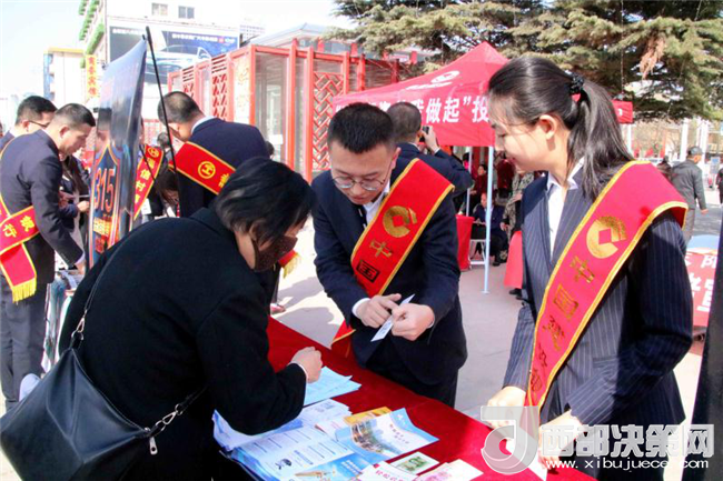 西部決策網(wǎng)——西部大開發(fā)訊(劉恒 齊彩云 通訊員 李海瑞 嵇祥)為進(jìn)一步提高金融消費(fèi)者的權(quán)責(zé)意識和風(fēng)險意識,幫助其自覺遠(yuǎn)離和抵制非法金融活動,引導(dǎo)金融消費(fèi)者理性維權(quán),構(gòu)建和諧、綠色的金融消費(fèi)環(huán)境,甘肅建行慶陽分行積極響應(yīng)人行號召,于3月15日在東湖公園及各營業(yè)網(wǎng)點(diǎn)開展了,以“權(quán)利·責(zé)任·風(fēng)險”為主題的消費(fèi)者權(quán)益保護(hù)宣傳活動。