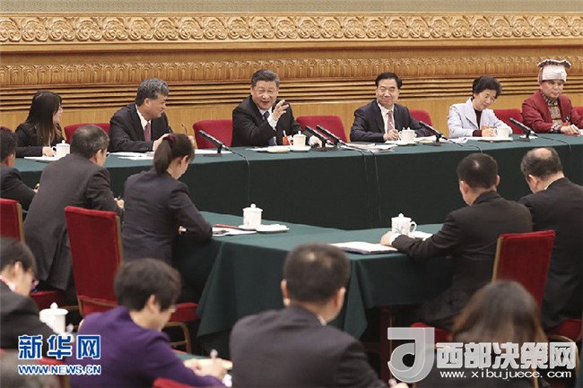 3月10日,習(xí)近平參加十三屆全國(guó)人大一次會(huì)議重慶代表團(tuán)的審議。(圖片來(lái)源:新華社)