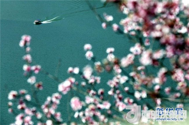 3月28日,游人駕駛快艇在甘肅省平?jīng)鍪嗅轻忌骄皡^(qū)游玩。(楊昕 攝)