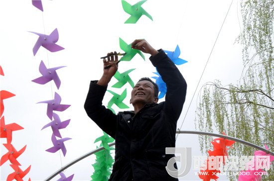 據(jù)現(xiàn)場負責人介紹,此次風車節(jié)共組裝風車30萬支用于打造風車花海、七彩風車長廊、兒童樂園為主題的三處樂園,五顏六色、形態(tài)各異的風車組成的“風車陣”,古樸的木道長亭組成的“七彩風車長廊”,絢麗綻放的桃花組成的“風車花海”,形成了浪漫溫馨的童話世界。