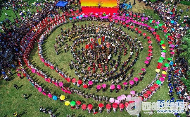 4月18日,在廣西百色市隆林各族自治縣舉辦的“三月三”歌會上,人們演唱山歌。新華社發(fā)(林斌 攝)
