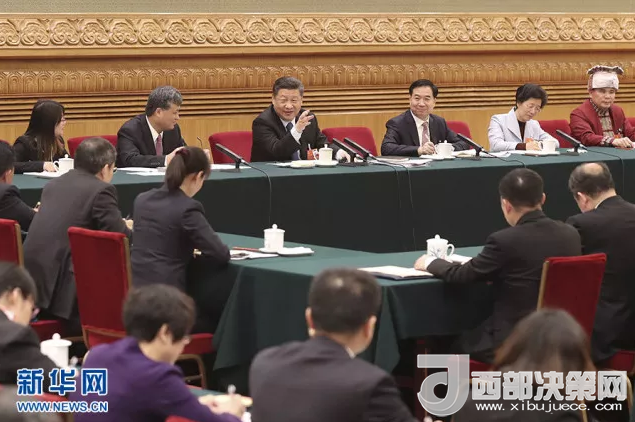 2018年3月7日,中共中央總書記、國家主席、中央軍委主席習(xí)近平參加十三屆全國人大一次會(huì)議廣東代表團(tuán)的審議。新華社發(fā)(盛佳鵬攝)