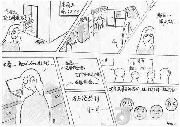 李雍告訴記者,家居與工業(yè)設計學院的學生都有一定美術功底,畫檢討剛好能讓學生在反省的同時鍛煉自己的專業(yè)技能,加上漫畫的表現(xiàn)形式輕松活潑,更符合“95后”的表達風格。“學生們的漫畫體檢討融合了他們的創(chuàng)作情感,文字無法完整表達的心理活動,都可以通過這種圖文并茂的形式生動地呈現(xiàn)出來,而他們會把這種情感潛移默化嫁接到檢討的屬性里去,從而提升檢討教育的實效性。”