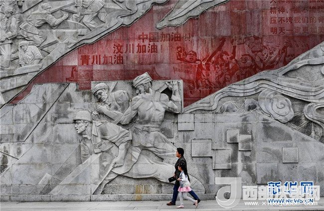 4月26日,市民從感恩奮進(jìn)墻前走過。感恩奮進(jìn)墻是花崗巖浮雕墻,長(zhǎng)230米,高12米,再現(xiàn)了青川的風(fēng)土人情、歷史文化和眾志成城、自強(qiáng)不息的抗震救災(zāi)精神、地震災(zāi)后重建和生態(tài)青川的壯美畫卷。新華社記者陶明攝