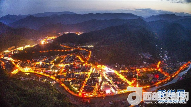 夜幕下的新青川縣城,燈火輝煌(4月25日無(wú)人機(jī)拍攝)。新華社記者陶明攝