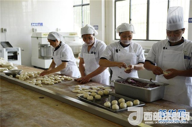 4月25日,廚師們?cè)谠颇洗髮W(xué)呈貢校區(qū)食堂制作玫瑰包。
