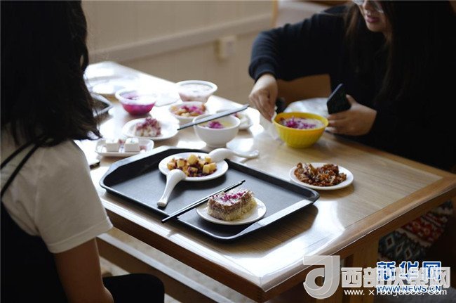4月25日,兩名云南大學(xué)的研究生來(lái)到食堂體驗(yàn)“玫瑰宴”。新華社發(fā)