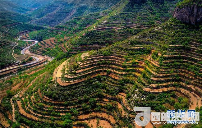 這是5月6日無(wú)人機(jī)拍攝的涉縣關(guān)防鄉(xiāng)后池村梯田和公路。