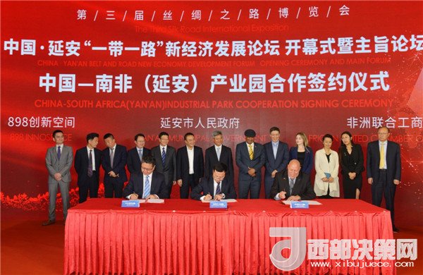 論壇上,還舉辦了中國-南非(延安)產(chǎn)業(yè)園、中國-格魯吉亞(延安)產(chǎn)業(yè)園合作簽約暨啟動(dòng)儀式及新經(jīng)濟(jì)項(xiàng)目對(duì)接會(huì),與會(huì)代表圍繞新經(jīng)濟(jì)、新產(chǎn)業(yè)助力城市轉(zhuǎn)型發(fā)展話題作了對(duì)話交流,延安市各縣區(qū)和相關(guān)單位就新經(jīng)濟(jì)項(xiàng)目進(jìn)行了集中簽約。