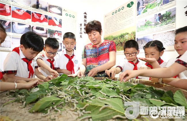 5月15日,德清縣新市鎮(zhèn)完全小學(xué)的10多名學(xué)生來到勇興村蠶桑文化館,了解養(yǎng)蠶制絲的古老手藝,感受中國(guó)絲之源和蠶桑文化的獨(dú)特魅力。(浙江在線拍友 王正 攝)