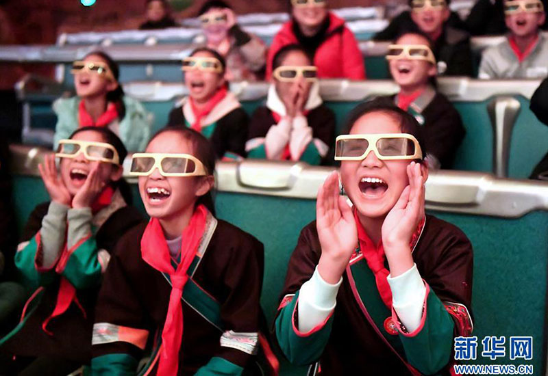 在廣西柳州市景行小學(xué)柳東校區(qū),來自三江侗族自治縣和融安縣大山里的留守兒童觀看3D動畫片(1月4日攝)。當(dāng)日,柳州市舉行關(guān)愛留守兒童城市圓夢活動。新華社發(fā)(黎寒池 攝)