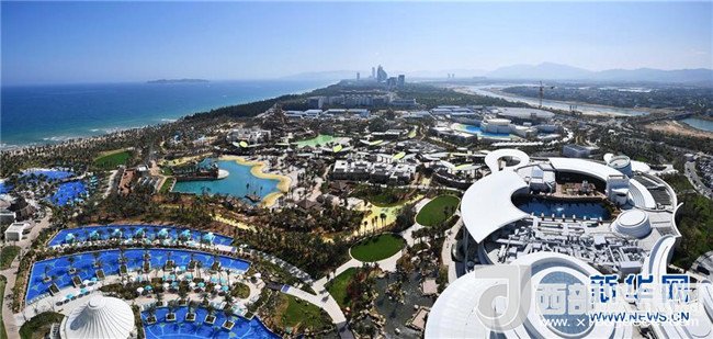 這是在海南三亞亞特蘭蒂斯酒店主樓拍攝的酒店園區(qū)(2月17日攝,拼接照片)。