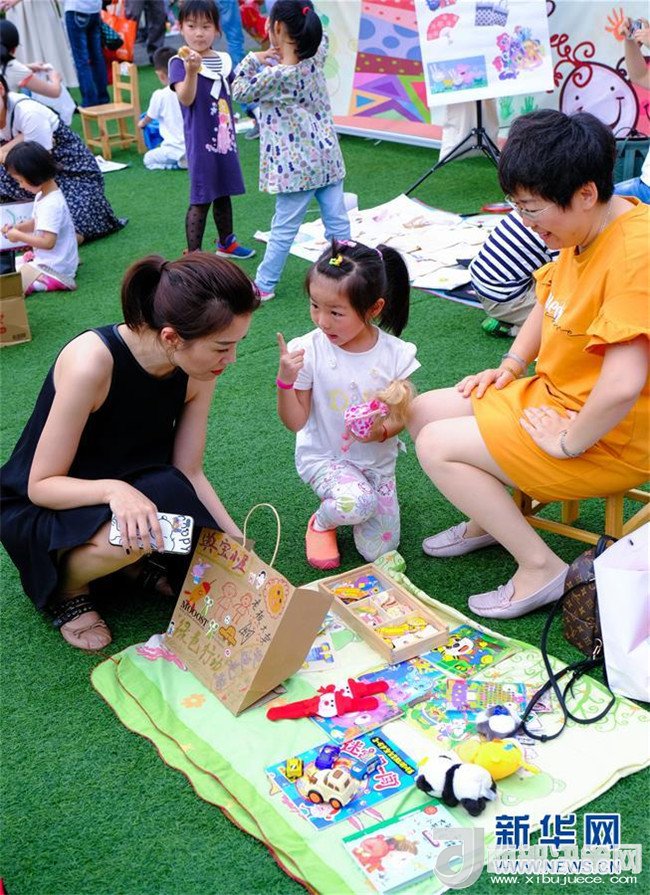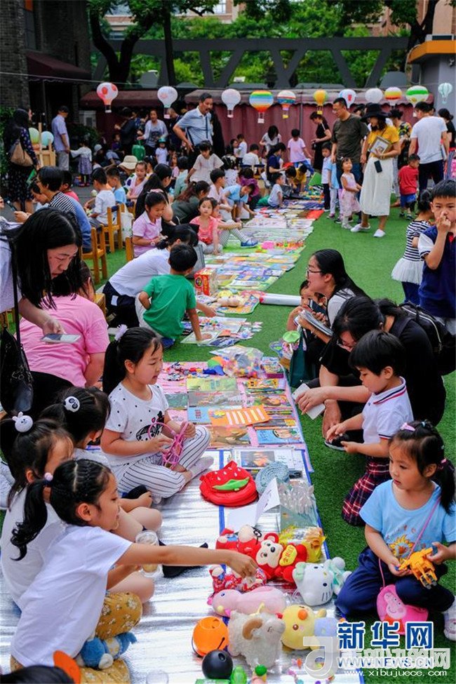 6月4日,孩子和家長們?cè)谛@“跳蚤市場(chǎng)”中買賣玩具和書籍。新華社記者 徐昱 攝