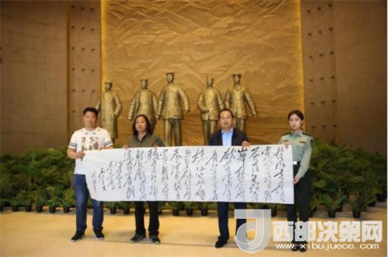 西部決策網—西部大開發(fā)訊(帥華鋒 通訊員 陳彥榮 齊彩云)在這綠意盎然、鳥語花香的美好時節(jié),“紅色南梁”迎來了中國“毛體”書法家協(xié)會會員、中國硬筆書法協(xié)會會員、中國書畫家協(xié)會會員、金陵書畫院理事、江西廬山毛主席書法研究院高級研究員、中國毛澤東詩詞研究會會員、韶山毛澤東書法藝術研究會會員王洪濤老師,他帶著對華池革命老區(qū)的深情厚誼和對劉志丹、謝子長、習仲勛等陜甘邊革命先輩舍生忘死、救民出水火的崇敬之意,長途跋涉一路輾轉,向南梁革命紀念館捐贈毛主席詩詞書法作品。