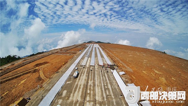 “前期遇到的最大障礙就是土石方開挖和回填工程。”現(xiàn)場施工管理人員介紹,作為渝東北典型的高填方機場,巫山機場填筑體最高處達(dá)100余米,整個擬建場地相對高差約227.25米,道槽區(qū)最大填高達(dá)50米,施工過程中需處理的溶洞多達(dá)40處,施工難度極大。在土石方作業(yè)最忙時每天有近2000人和800多臺機具晝夜施工,土石方運輸車輛川流不息。