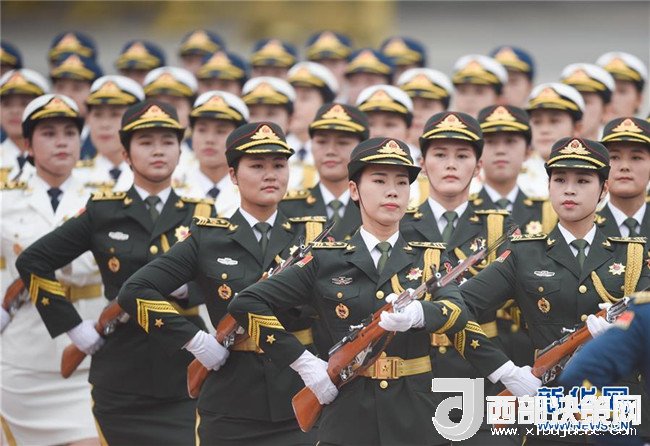 6月6日下午,國(guó)家主席習(xí)近平在人民大會(huì)堂東門外廣場(chǎng)舉行儀式,歡迎吉爾吉斯斯坦總統(tǒng)熱恩別科夫?qū)χ袊?guó)進(jìn)行國(guó)事訪問。這是在歡迎儀式上首次增加的三軍儀仗隊(duì)女兵方陣。新華社記者 陳曄華 攝