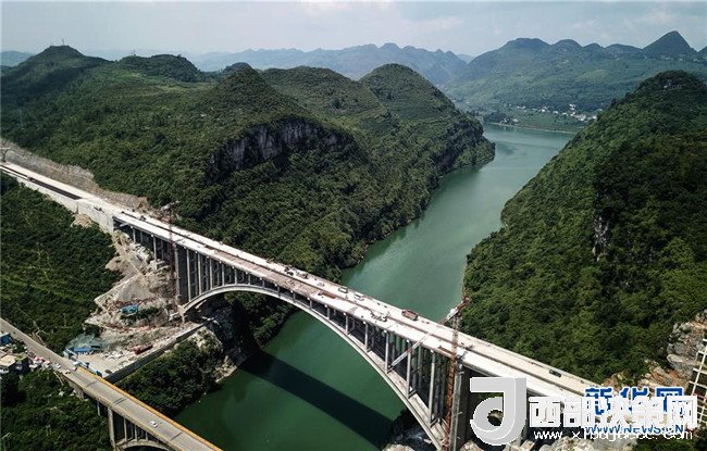 貴州織普高速公路控制性工程——夜郎湖特大橋日前實現(xiàn)全線貫通,預(yù)計本月底可全面建成。該橋由貴州橋梁建設(shè)集團(tuán)于2016年5月開始施工,全長391.4米,拱圈凈跨徑210米。據(jù)了解,織普高速全長約52公里,建成后由織金縣到普定縣的車程可從原來的2.5小時縮短到35分鐘,將大幅提高通行效率,進(jìn)一步推動沿線經(jīng)濟(jì)發(fā)展。新華社記者 陶亮 攝