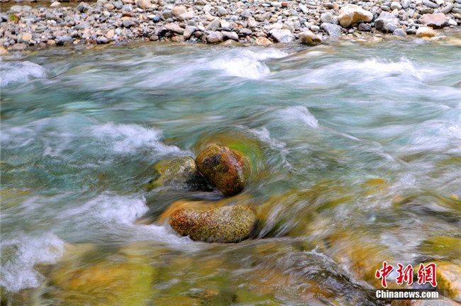 盛夏時節(jié),有著天山“幽谷”之稱的新疆和靜縣克爾古提,呈現(xiàn)出一副“冰火”兩重天景象。谷里氣溫涼爽,谷外高溫炙人,山道盤繞危崖,谷底芳華濃郁,溝谷亂石臥灘、清流穿碧,水畔古榆蒼茫,充滿了原始而又神秘的美,成為眾多游客選擇避暑的好地方??藸柟盘嵛挥谛陆挽o縣城東北天山南麓60多公里的山地峽谷,海拔1500至3000米,是國家重點公益林區(qū),屬于封閉狀天山水源涵養(yǎng)林區(qū)。王陸斌 攝