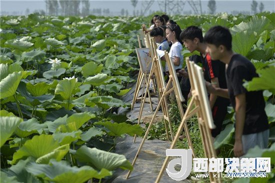 7月24日,一群學生在隆堯縣東良鎮(zhèn)澤畔村荷塘邊寫生。