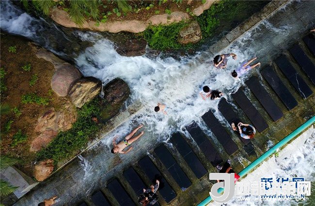 炎炎夏日,柳州市區(qū)柳江沿岸的人工瀑布群每天定時開放,為市民送去清涼。新華社發(fā)(黎寒池 攝)