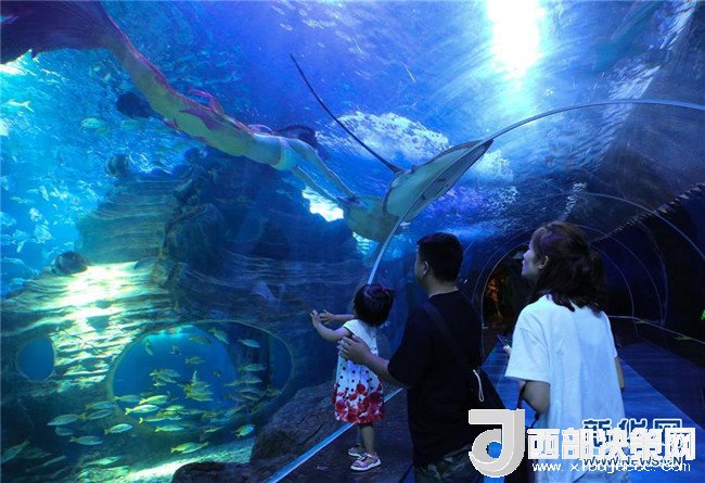 7月30日,家長(zhǎng)帶著孩子在貴陽(yáng)一家海洋世界觀(guān)看“美人魚(yú)”表演。