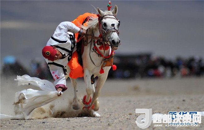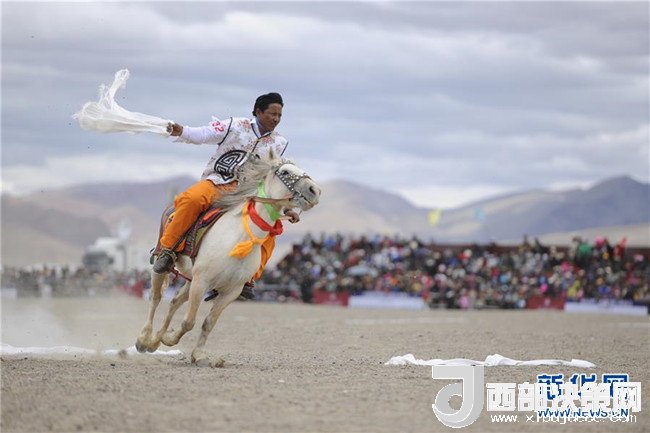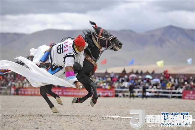 當(dāng)日,西藏阿里地區(qū)在獅泉河鎮(zhèn)舉行賽馬競(jìng)技大賽,比賽項(xiàng)目有騎馬拾哈達(dá)、撿茶磚、騎馬射箭、馬術(shù)表演等,共有150名農(nóng)牧民選手參加比賽,吸引了2萬余名觀眾前來觀看。新華社記者張汝鋒攝